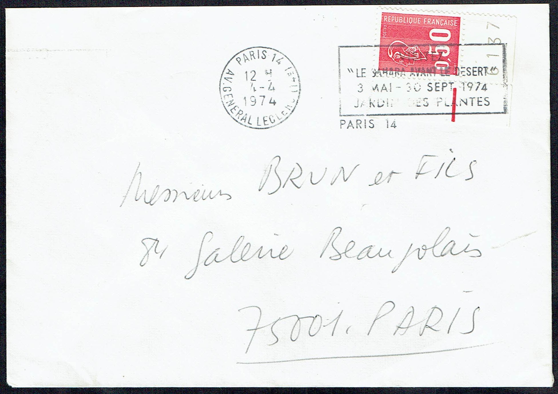 Dans l’article Les aspects du timbre 0,50 F Marianne de Béquet, nous avons défini les 21 aspects que l’on peut associer au timbre 0,50 F Marianne de Béquet. Nous allons maintenant illustrer ces aspects à l’aide de plis et, également, montrer des plis mettant en évidence certaines particularités de fabrication des timbres. J’entends par là des plis où le timbre est attenant à une marge horizontale avec une indication de presse, à une marge verticale datée ou numérotée, à un coin de feuille daté ou avec repère électronique... Ce type de pli me plaît beaucoup car il permet de préciser la provenance du timbre, mais surtout il est difficile à trouver « nature », la plupart des utilisateurs jetant ces bords de papier qui n’ont pour eux aucun intérêt avant de coller le timbre sur l’enveloppe.